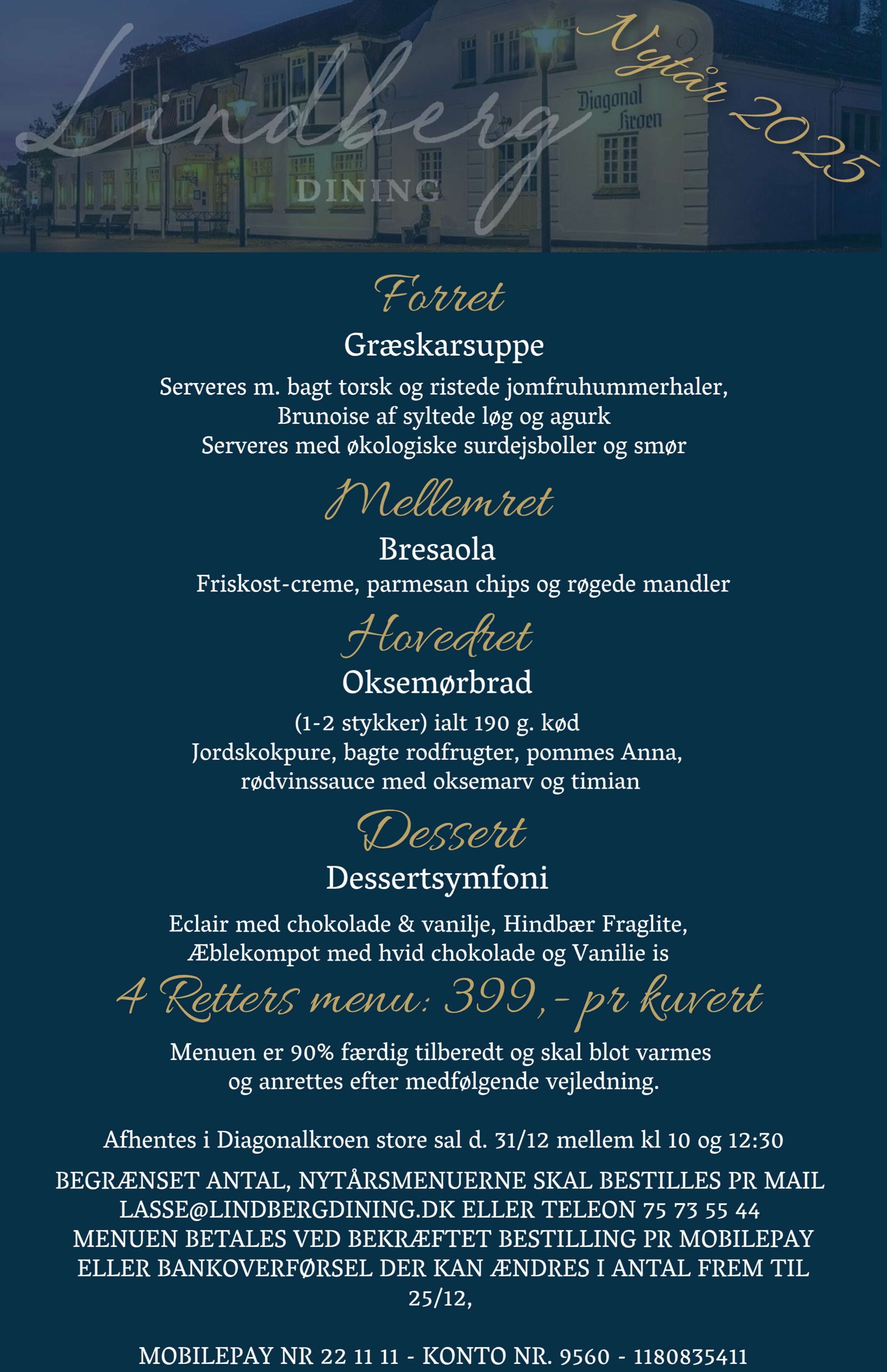 BESTILLING PÅ LASSE@LINDBERGDINING.DK
